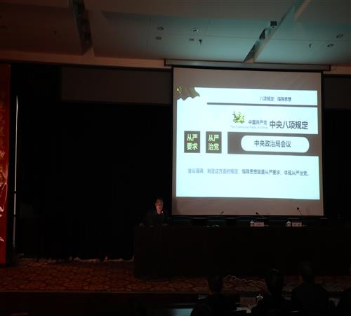 會(huì)上,劉潤詳細(xì)講解了八項(xiàng)規(guī)定政策精神,分析了近年來違反八項(xiàng)規(guī)定的典型案例,并以自身多年的工作經(jīng)驗(yàn),對落實(shí)落細(xì)八項(xiàng)規(guī)定政策精神進(jìn)行了深入的講解和剖析。